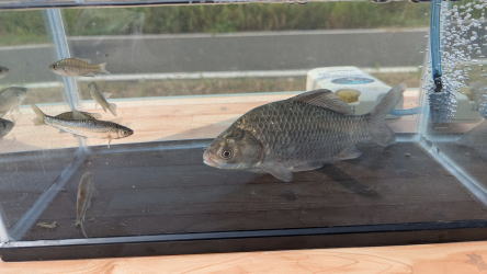 今回の観察会では、中島に生息する魚や植物について、西日本技術開発(株)の皆さんからわかりやすい説明をしていただきました。