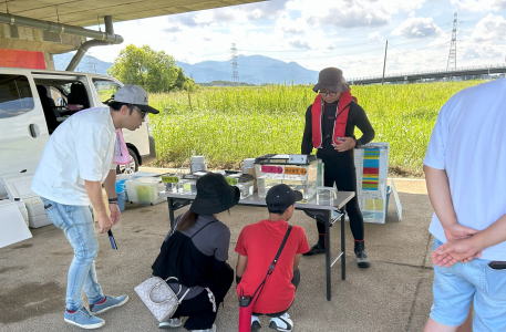 本日(8月24日)、笹尾川水辺の楽校において、国土交通省遠賀川河川事務所ならびに北九州市水質試験所のご協力のもと、「夏休みだ 水辺で遊ぼう」イベントが開催されました。 当日は、遠賀川河川事務所のご支援によりドローンによる空撮も行われ、青空の下、カヌー体験やお魚のお話、水質調べなど、盛りだくさんのプログラムが実施されました。参加した子どもたちは、笑顔いっぱいに夏休みの楽しい思い出を作っている様子でした。 イベント終了後には、会員を対象に、恒例となっている「住民との協働による水質試験」も行われ、水辺の環境への関心と理解を深める貴重な機会となりました。 |