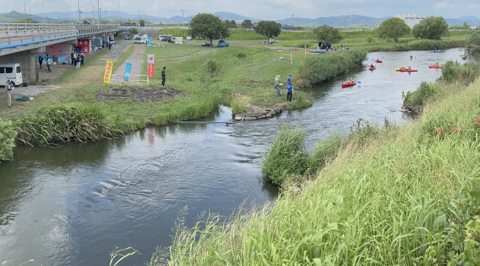 本日(8月5日)、夏の風物詩「盆トンボ(赤とんぼ)」が早くも空を舞う中、Fコープのご依頼により、【Fコープ夏休み子ども企画「カヌー体験」】を実施しました。実施にあたっては、国土交通省遠賀川河川事務所 河川環境課の皆さまにもご協力をいただき、遠賀川の自然を舞台に、子どもたちが楽しく安全にカヌー体験を行うことができました。