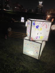 みんなの想いがキラキラと灯りに変わり、夜の河川敷が笑顔でいっぱいになりました。
