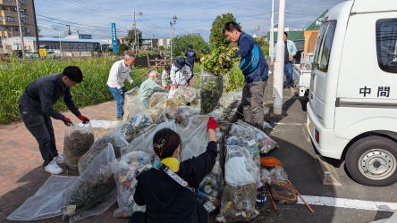 10月26日(土)、中間市の曲川にて「第38回清掃活動」が開催されました。(開会式 8時50分) 主催は「曲川を守る会」および「蓮花寺曲川を守る会」の皆さんです。 事前には主催者の皆さんによって河川敷の草刈りが行われ、当日は企業の皆様や親子連れの方々が参加され、刈り取られた草の回収やごみ拾いに汗を流しました。 作業中には、川を泳ぐコイの群れを見つけた子どもたちが目を輝かせ、「こんなにいるんだ!」と驚く場面もあり、びっくりしていました。 作業が終わる頃には河川敷がすっかりきれいになり、参加者の皆さんからは笑顔がこぼれ、達成感に包まれていました。 これからは、散歩や憩いの場として、より気持ちよく利用していただけそうです。 |
