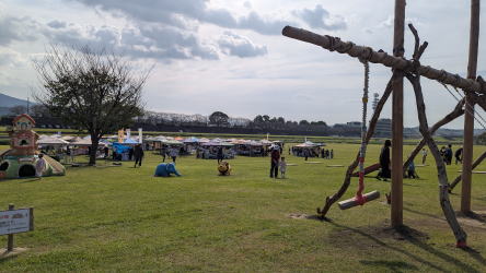 11月2日(日)、「のおがたアウトドアであそぼう♪in遠賀川」と「パンとスイーツと秋の河川敷マルシェ2025」が、直方リバーサイドパーク(直方市役所下河川敷)で元気に開催されました。 当日は、柔らかな秋晴れの空の下、たくさんの親子連れやグループが訪れ、会場一帯はにぎやかな笑い声と楽しそうな歓声に包まれていました。 「のおがたアウトドアであそぼう♪in遠賀川」は今回で6回目。今年は「秋のパンフェス」との同時開催ということもあり、川のそばでアウトドア体験を楽しむ人、焼きたてパンやスイーツを片手に秋の味覚を満喫する人など、思い思いに秋の一日を過ごす姿があちこちで見られました。 子どもたちは川辺で元気いっぱいに遊び、保護者の方々はマルシェのグルメを楽しみながらのんびりと。 心地よい風の中で、遊んで、食べて、笑って――。 |