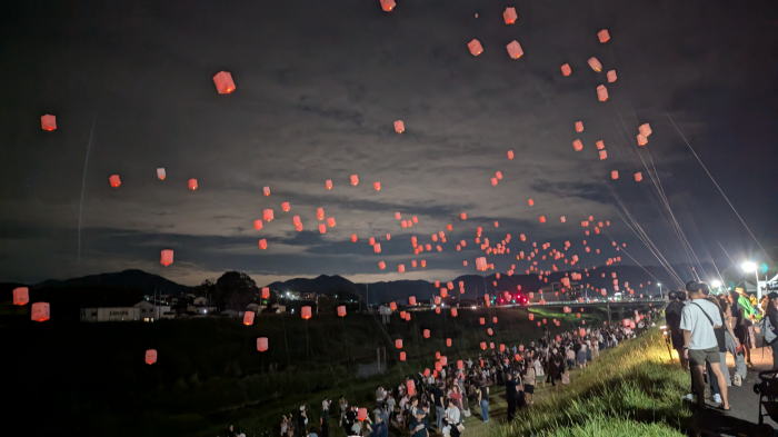 9月27日(土) 「犬鳴川みどりの会」が犬鳴川河川公園の環境整備に取り組んでから、今年で30年。長年の活動の成果として、今ではこの公園は秋になると30万本ものヒガンバナが咲き誇る名所として、多くの人々に親しまれています。 そしてこのたび、30周年を記念して、犬鳴川河川公園にて幻想的な「ランタンナイト」が開催されました。夜の河川敷に集まったのは、家族連れやカップル、地域の方々など多くの来場者。事前予約制の300個のLEDランタンには、それぞれの願いやメッセージが込められており、参加者たちは長い紐を使って、夜空へとゆっくりと舞い上がらせました。 風にゆらめく光の球たちは、まるで星が地上から浮かび上がるよう。子どもたちは歓声をあげ、大人たちは思い思いに空を見上げて静かに願いを込める——そんな、笑顔と感動に包まれたひとときとなりました。 自然と人が調和した美しい犬鳴川の風景に、ランタンのあたたかな光が加わったこの夜。みどりの会の30年の歩みを祝うにふさわしい、心に残るイベントとなりました。 明日28日はヒガンバナまつりが開催されます。 |