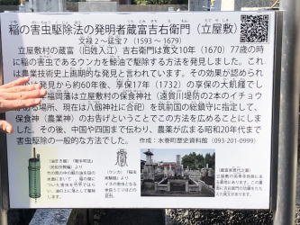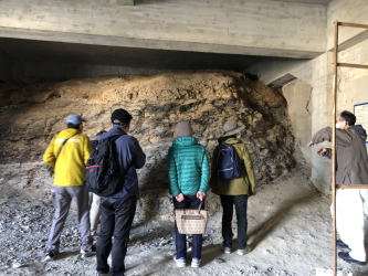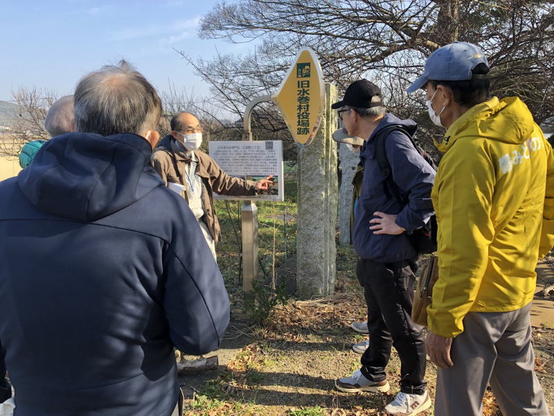 2026年1月16日10時から、響みどりの会で水巻町の歴史巡りを行いました。水巻歴史資料館では、大坪学芸員の方に展示物の説明をしていただいた後、八釼神社、八所神社、河守神社、頃末小学校を巡りました。 資料館で見学した弥生土器壺(遠賀川式土器)は、遠賀川の川底から水巻町職員によって発見されたものです。原形を保ったまま出土しており、稲作発祥の地といわれる水巻町と遠賀川との深い関わりがよく分かりました。 八釼神社では、大イチョウ「砧姫」と日本武尊にまつわる伝承を伺いました。あわせて、旧水巻町役場の門柱や、鯨油を使ってイナゴ駆除を行った蔵冨吉右衛門の墓を見学し、地域に尽くした人物の歴史を知ることができました。 八所神社では、5世紀の古墳とされる場所を見学しました。壁石と考えられる石や、全国的にも珍しい四環鈴が発掘されたという説明が印象的でした。 その後、江戸時代の堀川掘削時に残された切貫のノミ跡を見学し、当時の人々の苦労や技術に思いをはせました。 最後に、頃末小学校の床下にある約3,000万年前の地層を見学しました。ここは「ブラタモリ」でも紹介された場所で、当時は海だったため、貝などの生物の化石が見られます。長い年月を経て、これらが石炭になったことを学びました。 短い時間でしたが、水巻町の歴史をぎゅっと学ぶことができました。身近な場所に、想像以上に長い歴史があることを改めて感じました。 |